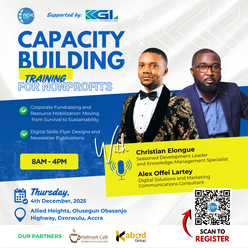 NCVO Ghana trains and offer consultancy services to daring non-profit organizations led by great founders and co-build innovative social enterprises with them; leveraging their extensive grassroot network and insights. Our work is made possible by our generous Sponsors and Partners.